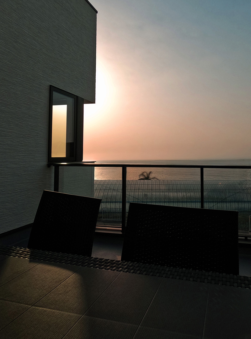 淡路島東海岸ならではの絶景。朝は水平線から昇る朝日に包まれ、一日の始まりを特別なものに。