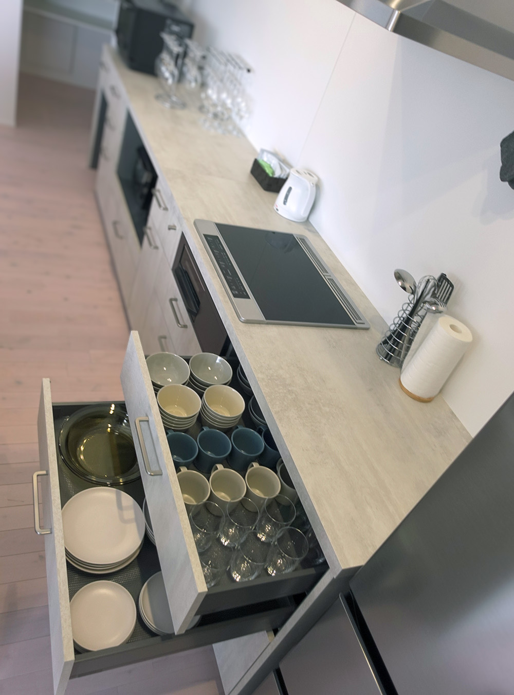 冷蔵庫・調理器具・ダイニングテーブル・食器・カトラリー